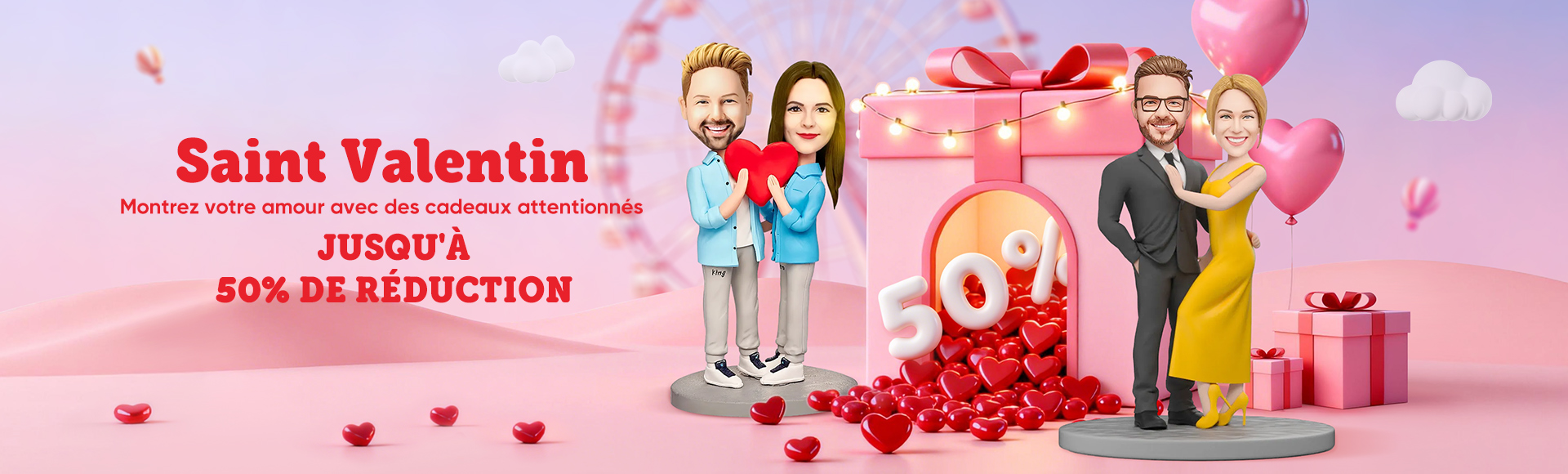 Bobblehead personnalisé Couple Tenue Amour Coeur Couple avec texte gravé -