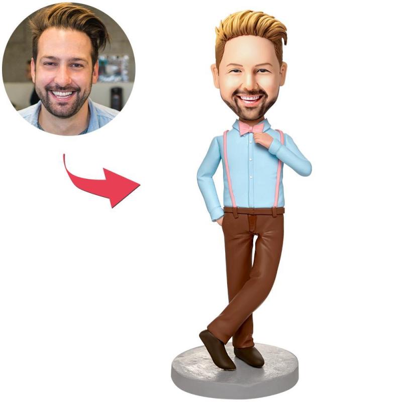 Figurines personnalisées pour homme moderne de vêtements bleus avec texte gravé