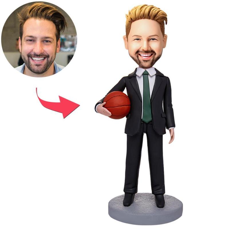 Boss Businessman And Basketball Bobbleheads personnalisés avec texte gravé