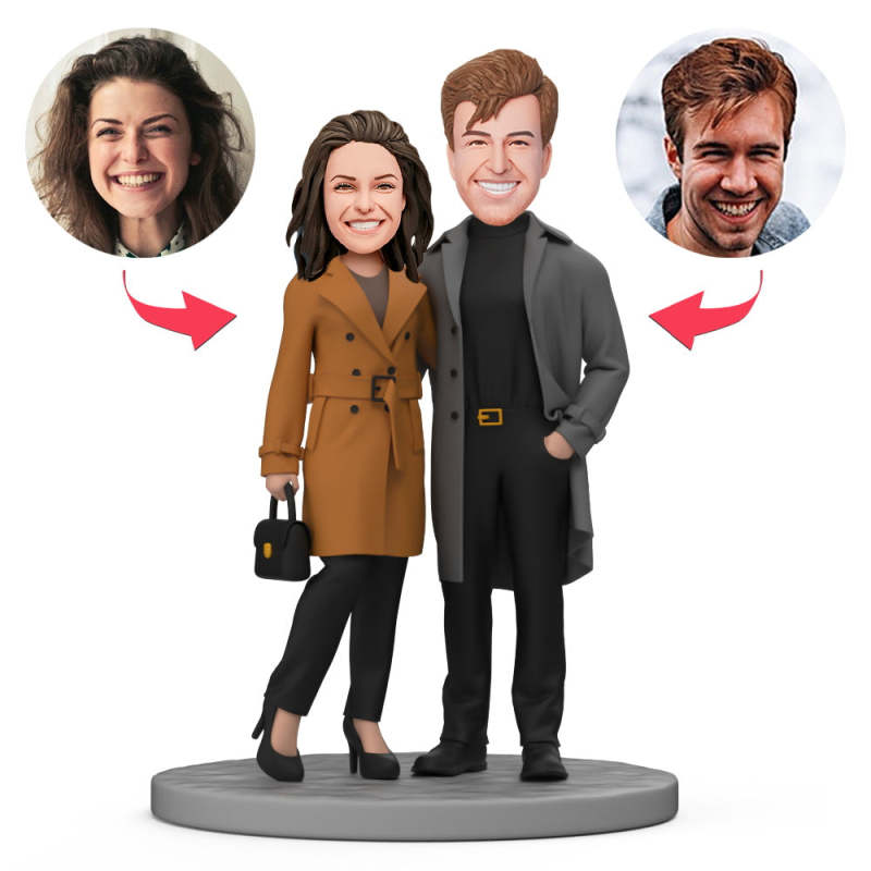 Un Couple D'affaires Porte Des Manteaux Marron Et Gris Bobblehead Personnalisé Avec Texte Gravé