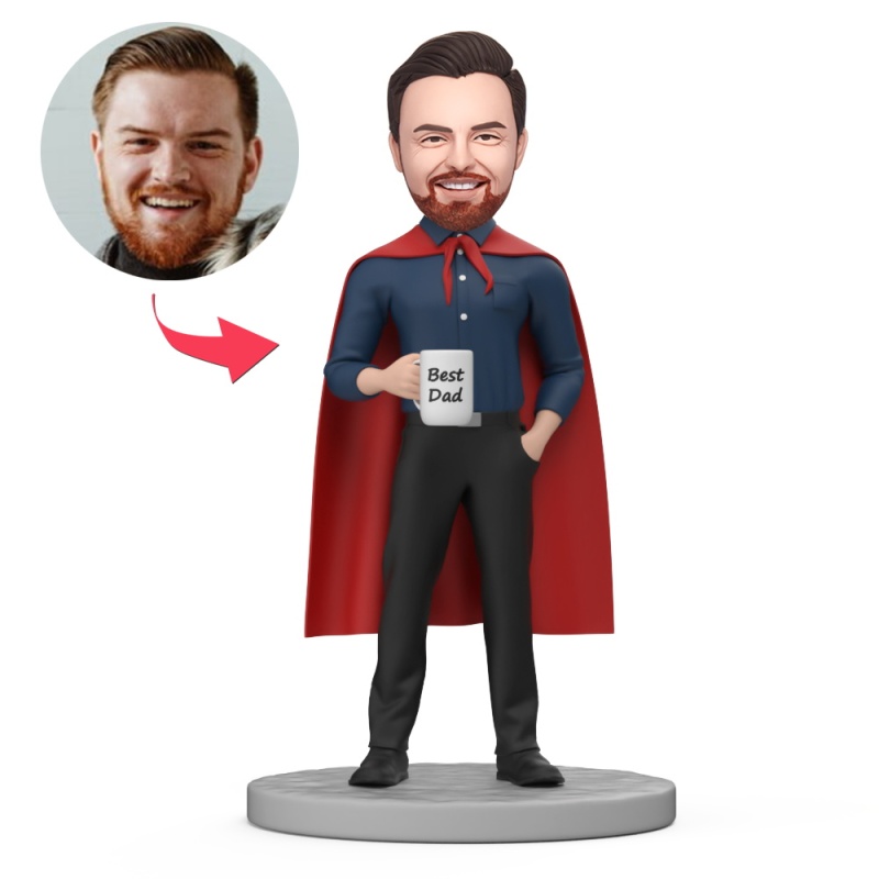 Papa D'affaires Portant Une Cape Rouge, Figurine À Tête Branlante Personnalisée Avec Texte Gravé
