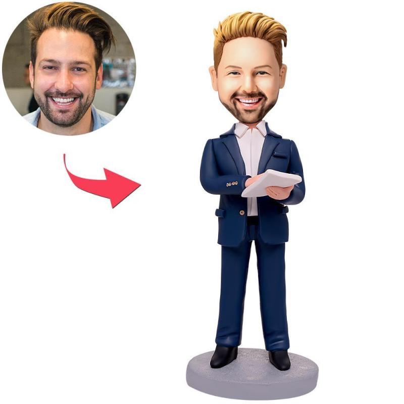 Figurine Personnalisée homme affaires, prendre notes avec texte gravé