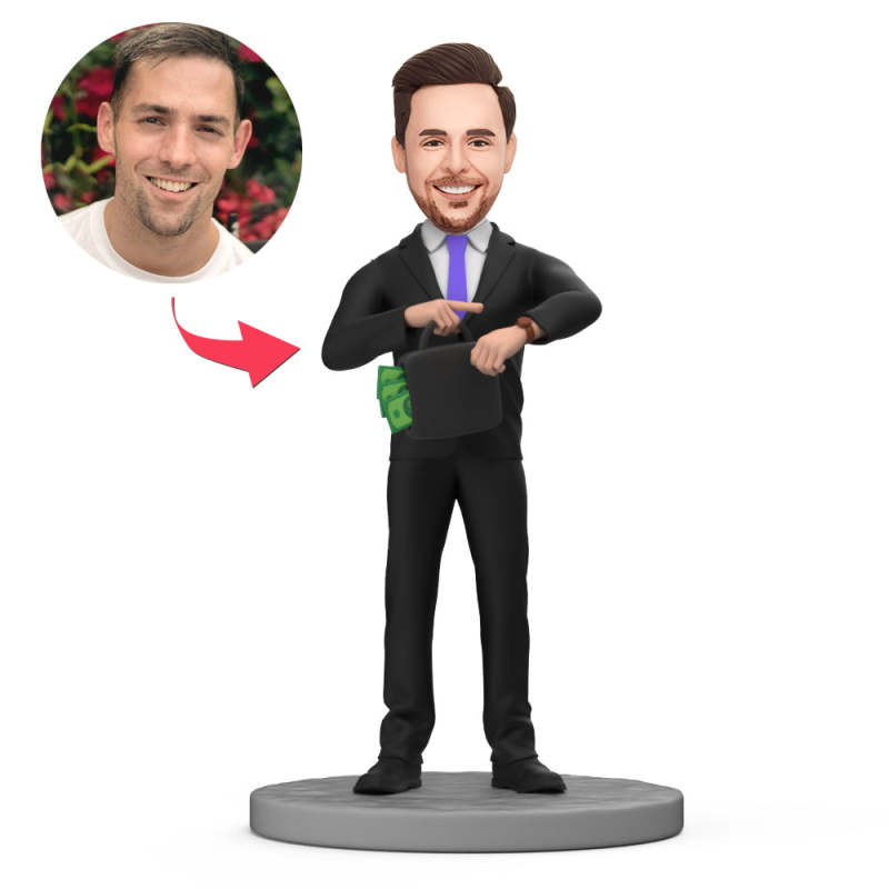 Les Hommes D’affaires Portent Une Montre Time Is Money Bobblehead Personnalisé Avec Texte Gravé