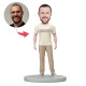 Figurine À Tête Branlante Personnalisée Avec Texte Gravé, Tenue De Patron Décontractée, Costume Beige