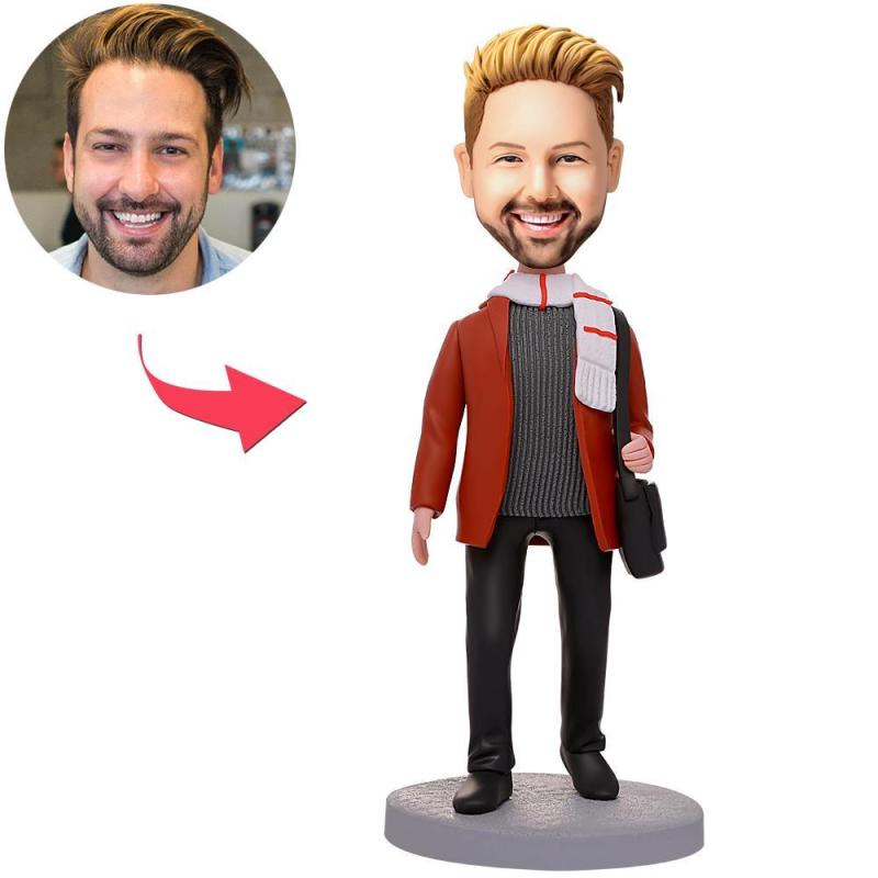 Homme décontracté en écharpe Bobbleheads personnalisés avec texte gravé