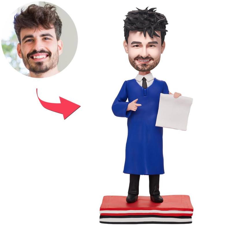 Bobblehead personnalisé Homme de remise des diplômes cool avec texte gravé