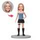 Femme Cool En Haut Sans Manches Bleu Et Short Bobbleheads Personnalisés Avec Cadeau Texte Gravé