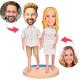 Bobblehead personnalisé Couple marchant sur la plage avec texte gravé