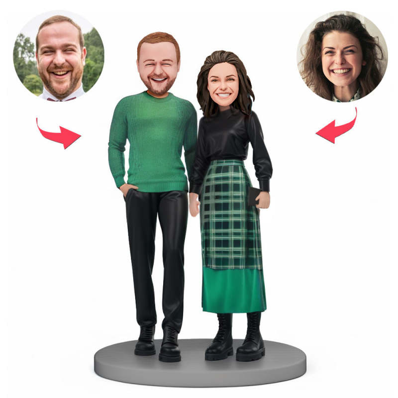 Couple De Tête À Pompon Personnalisé Portant Des Costumes De Noël Verts, Cadeau De Noël
