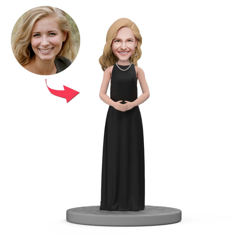 Bobblehead Personnalisé Une Dame Noble Portant Une Robe Longue Noire