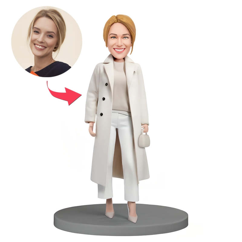 Bobblehead Personnalisé Belle Femme En Costume Blanc