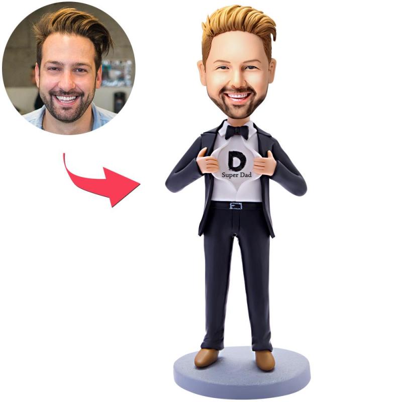 Fête des pères Bobblehead personnalisé Super papa super homme d'affaires avec texte gravé