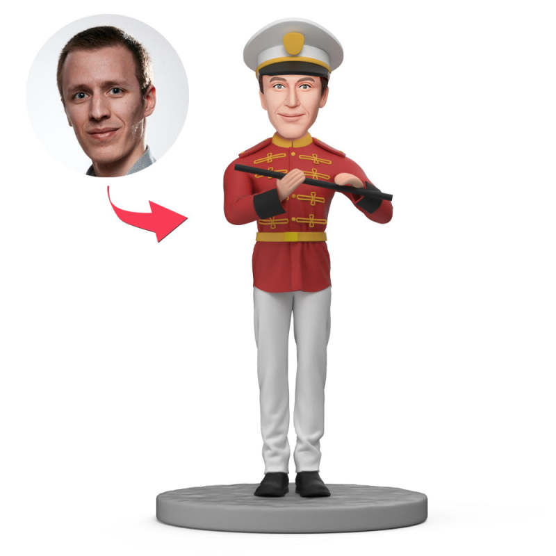 Flûtiste Masculin De L’orchestre Symphonique Bobblehead Personnalisé Avec Texte Gravé