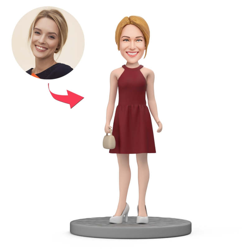 Bobblehead Personnalisé Jeune Femme En Robe Rouge Cadeau Pour Elle