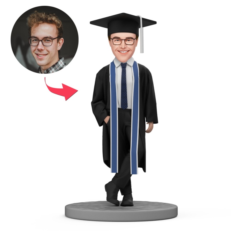 Cadeau Bobbleheads Personnalisé Pour Homme Diplômé Avec Ruban Bleu
