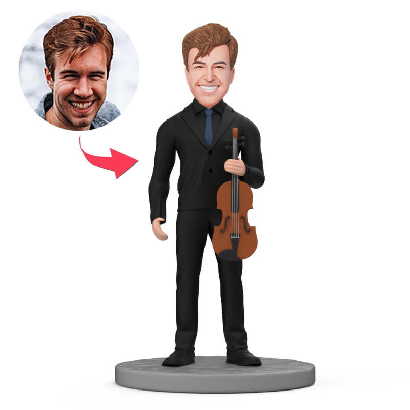 Chemise Noire Homme Bobbleheads Personnalisée Tenant Un Violon Avec Texte Gravé Pour Papa