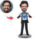 Papa Personnalisé Porte Un Costume Noir Et Une Chemise Bleue Bobbleheads Avec Texte Gravé