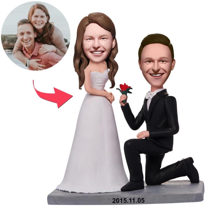 Bobblehead personnalisé Agenouillez-vous sur un genou pour proposer un couple avec texte gravé