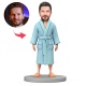Figurine Personnalisée « Homme En Peignoir Bleu Clair » Avec Texte Gravé (cadeau)
