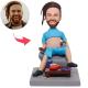 Bobblehead personnalisé Homme assis sur une chaise de manger de la restauration rapide avec texte gravé
