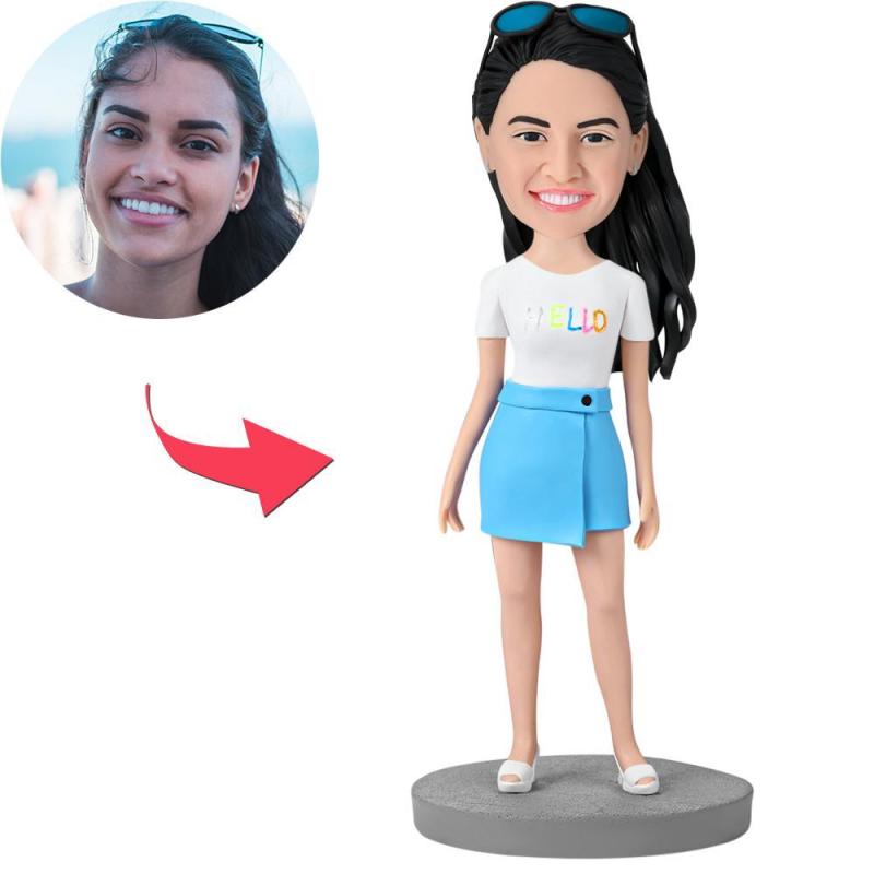Figurine Personnalisée Fille à La Mode Portant Une Jupe Bleue