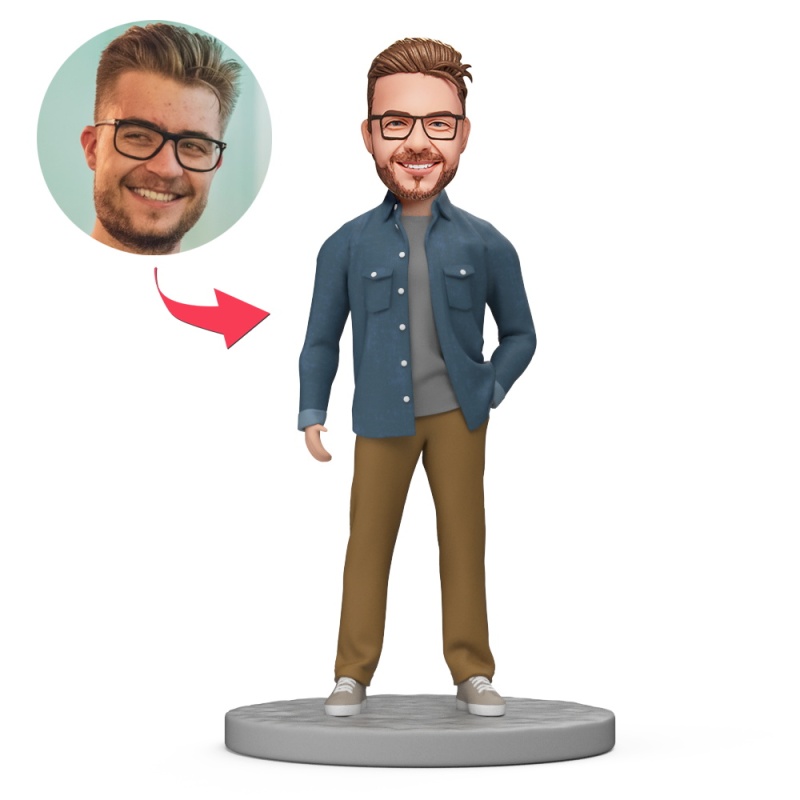 Figurine À Tête Branlante Représentant Un Père Portant Un Pantalon Décontracté Et Des Vêtements Gris Avec Texte Gravé