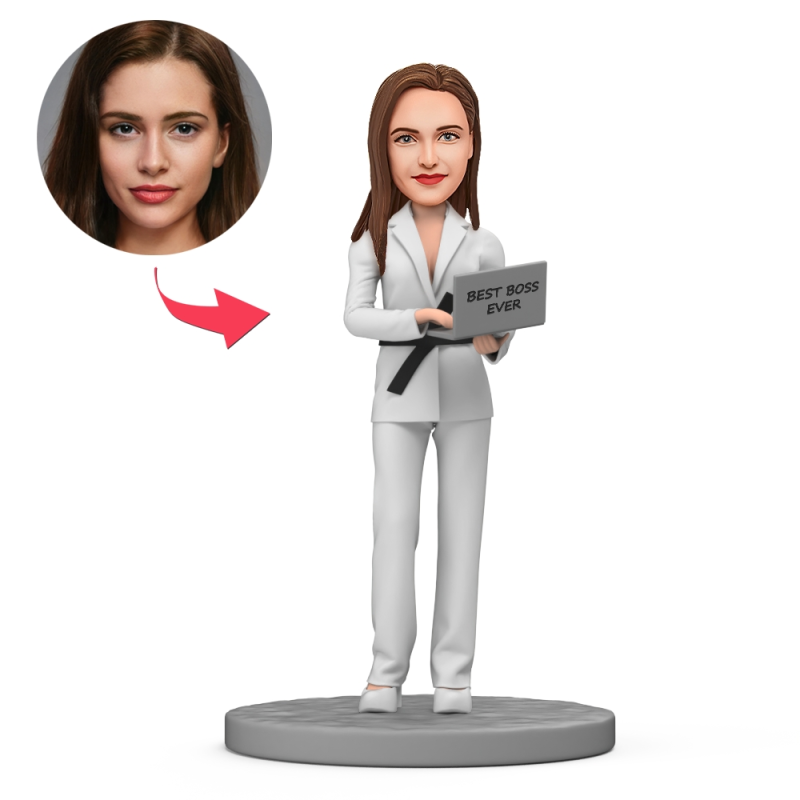 La Meilleure Patronne Féminine De Tous Les Temps Travaille Avec Un Ordinateur À La Main Bobblehead Personnalisé Avec Texte Gravé