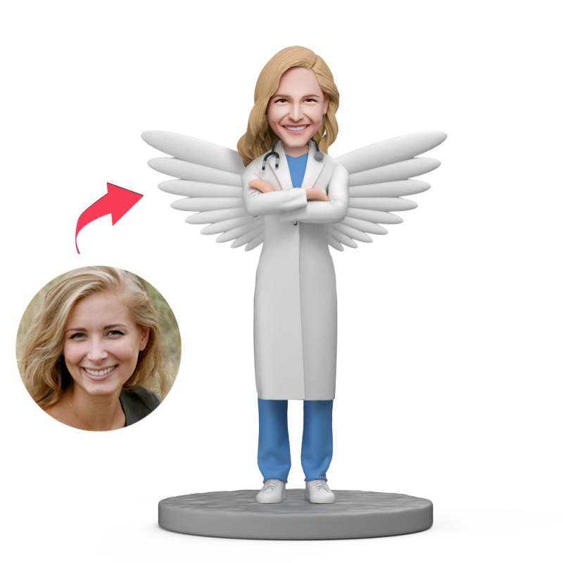 Femme Médecin Avec Aile Bobblehead Personnalisé Avec Texte Gravé