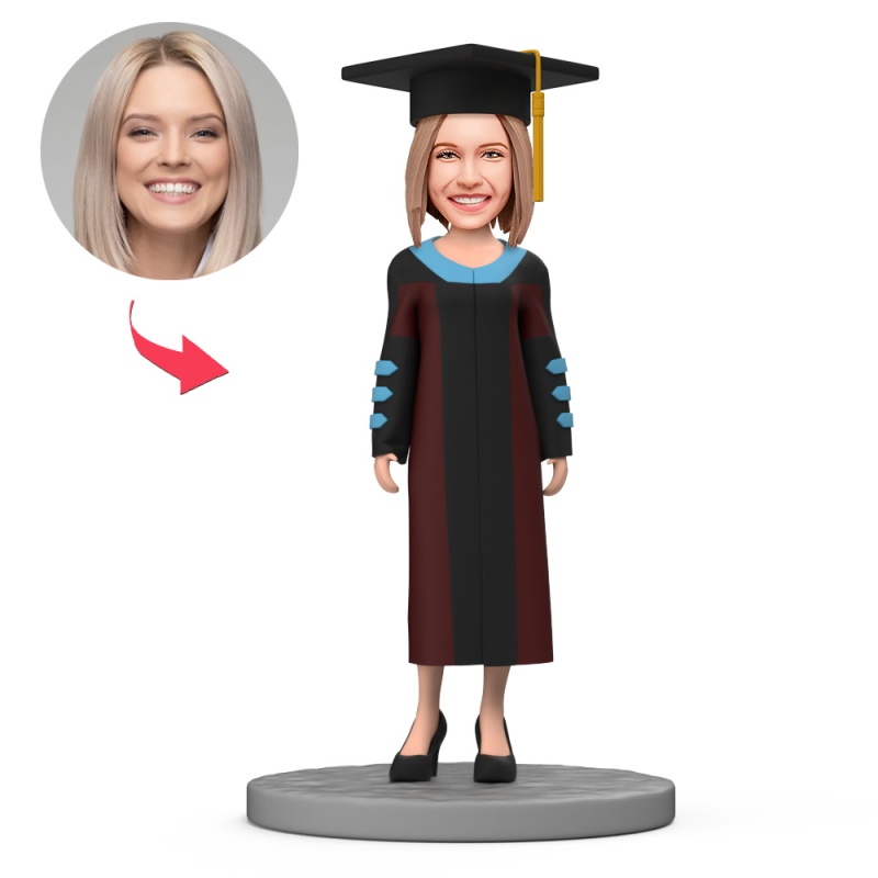 Figurine À Tête Branlante Personnalisée Pour Femme Diplômée D'un Doctorat Avec Texte Gravé. Cadeau De Remise De Diplôme Pour Elle.