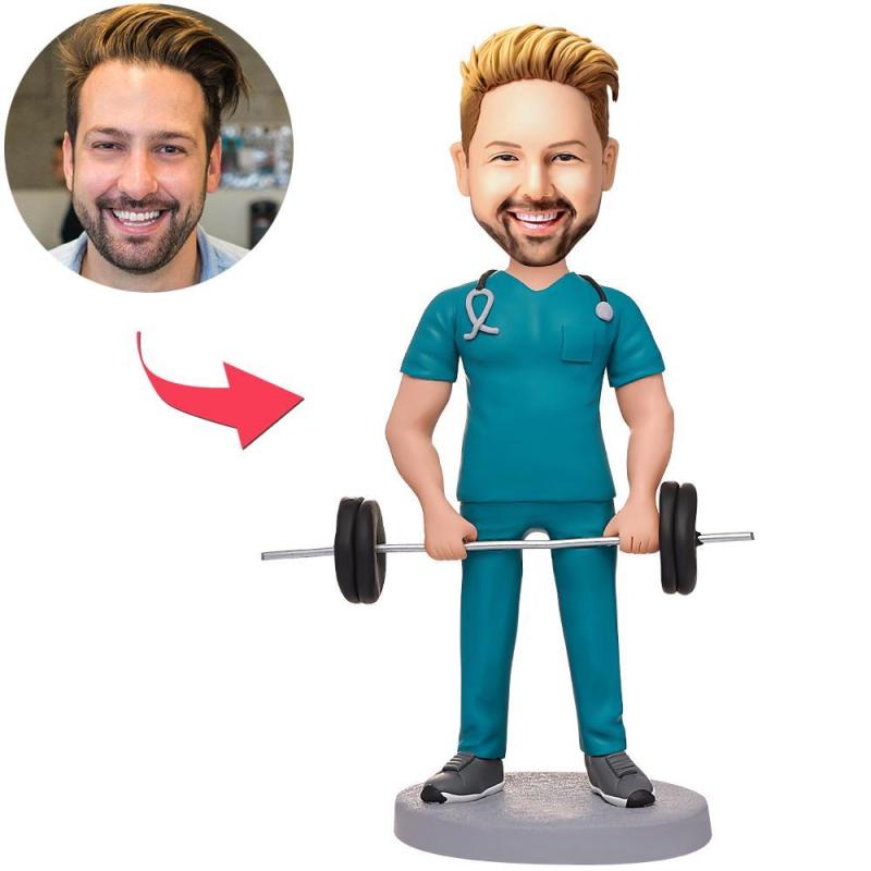 Figurines personnalisées de médecin de sexe masculin de remise en forme avec texte gravé