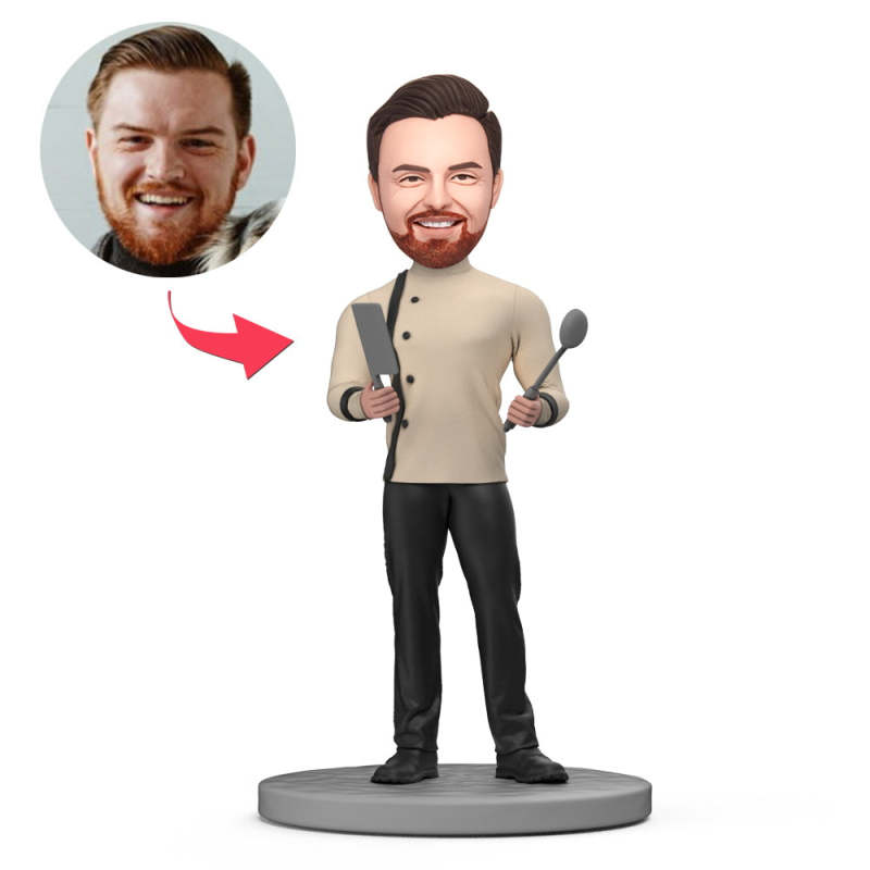 Chef cinq étoiles et outils personnalisés Bobblehead avec texte gravé