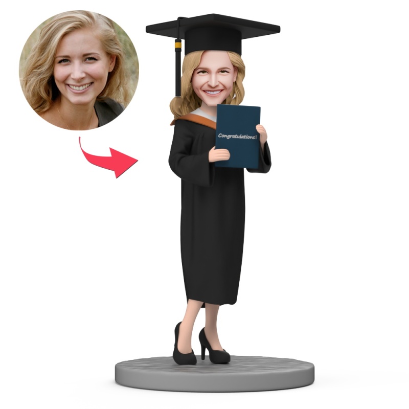 Cadeaux De Remise De Diplôme Pour Elle Certificat De Remise De Diplôme Féminin En Main Bobblehead Personnalisé Avec Texte Gravé