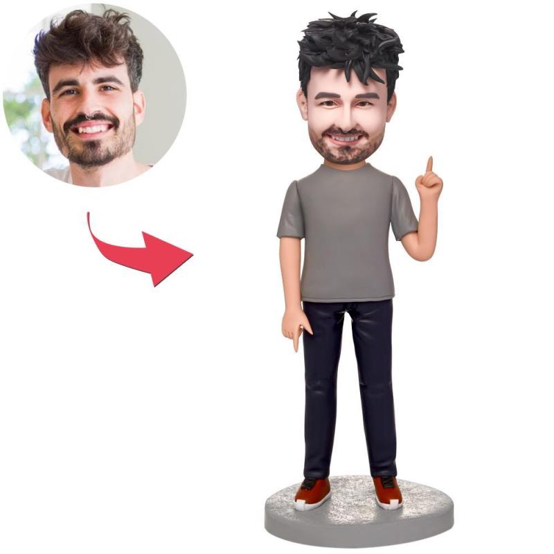 Figurines à tête branlantes personnalisées grises pour homme avec texte gravé