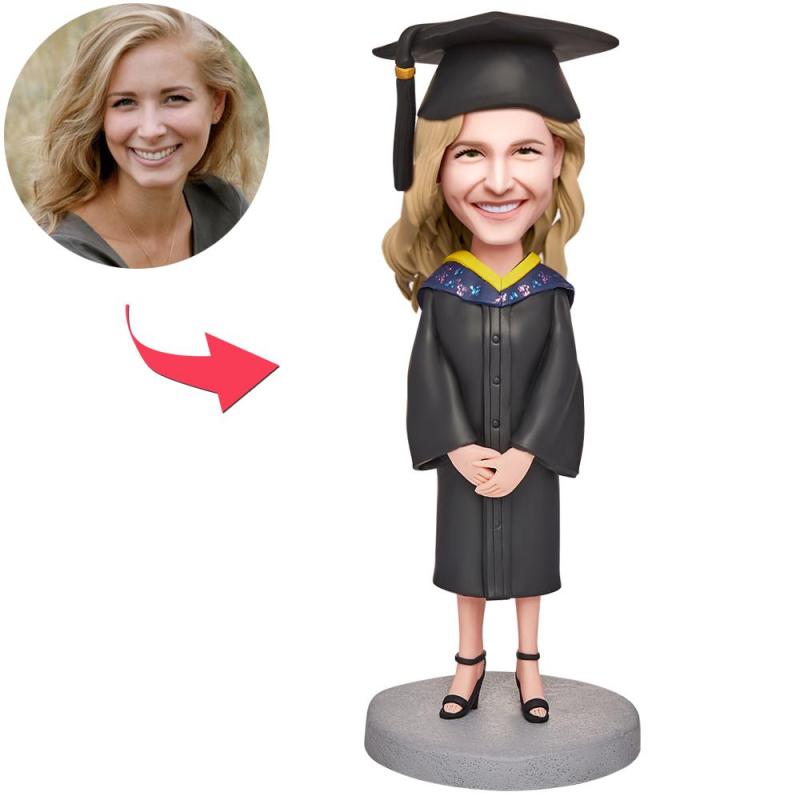 Bobblehead personnalisé heureux, graduation, girl avec texte gravé