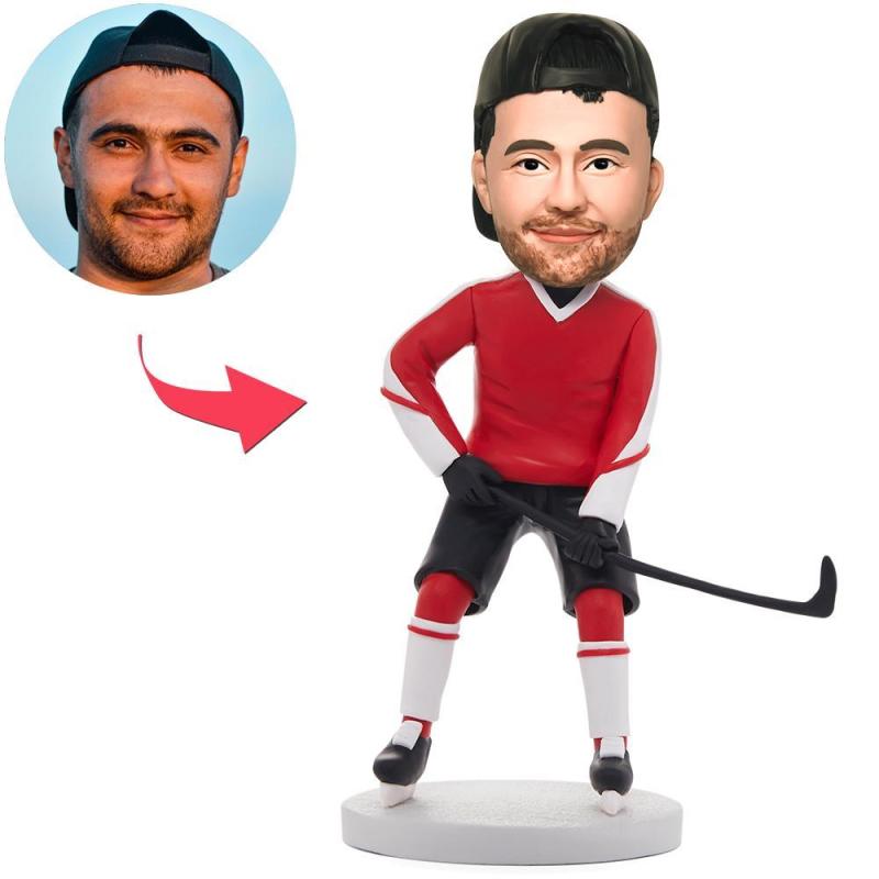 Figurine Personnalisée Joueur de hockey en vêtements rouges rouges