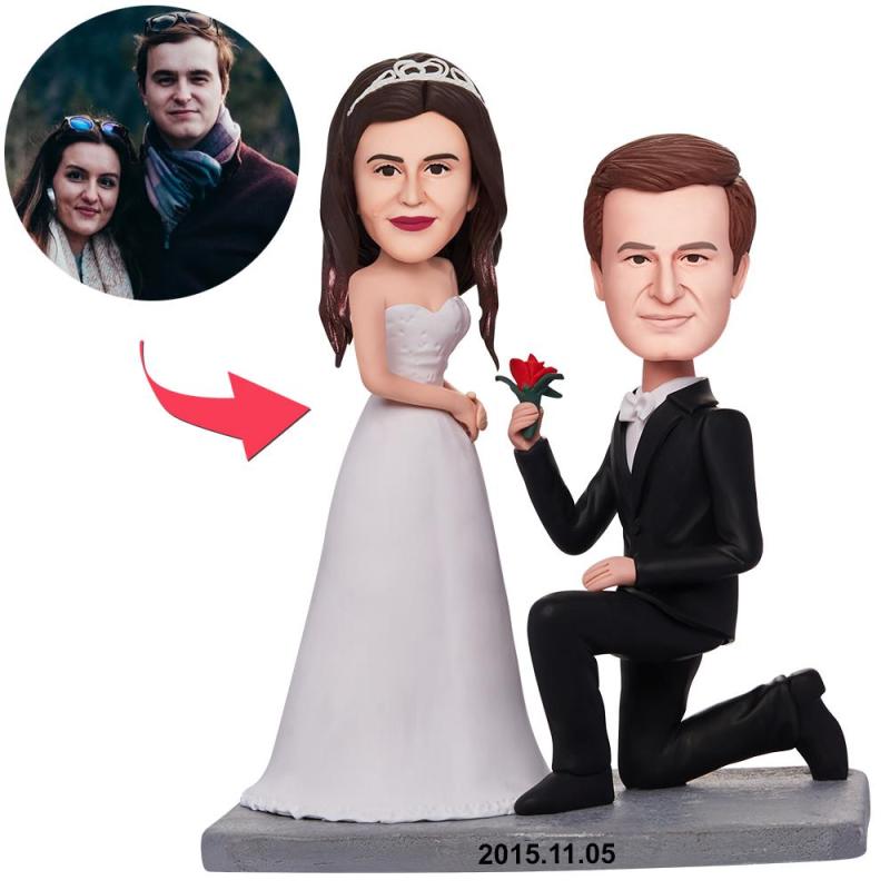 Kneel Down On One Knee To Propose Couple Custom Bobbleheads