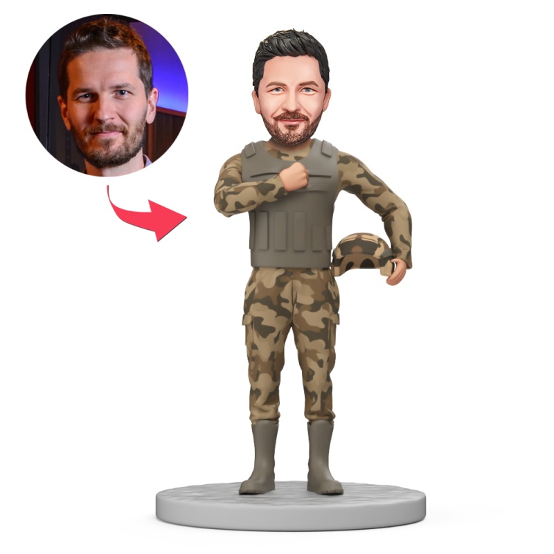 Figurine À Tête Branlante Personnalisée Représentant Un Soldat Loyal De L'armée Avec Texte Gravé