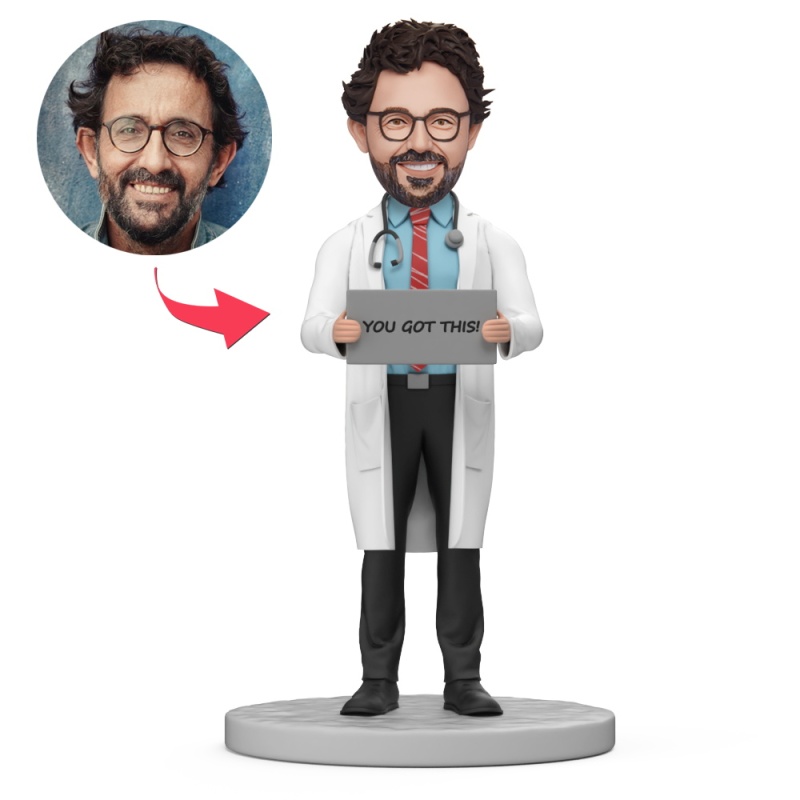 Médecin Masculin Avec Stéthoscope. Vous Avez Cette Figurine À Tête Branlante Personnalisée Avec Texte Gravé.