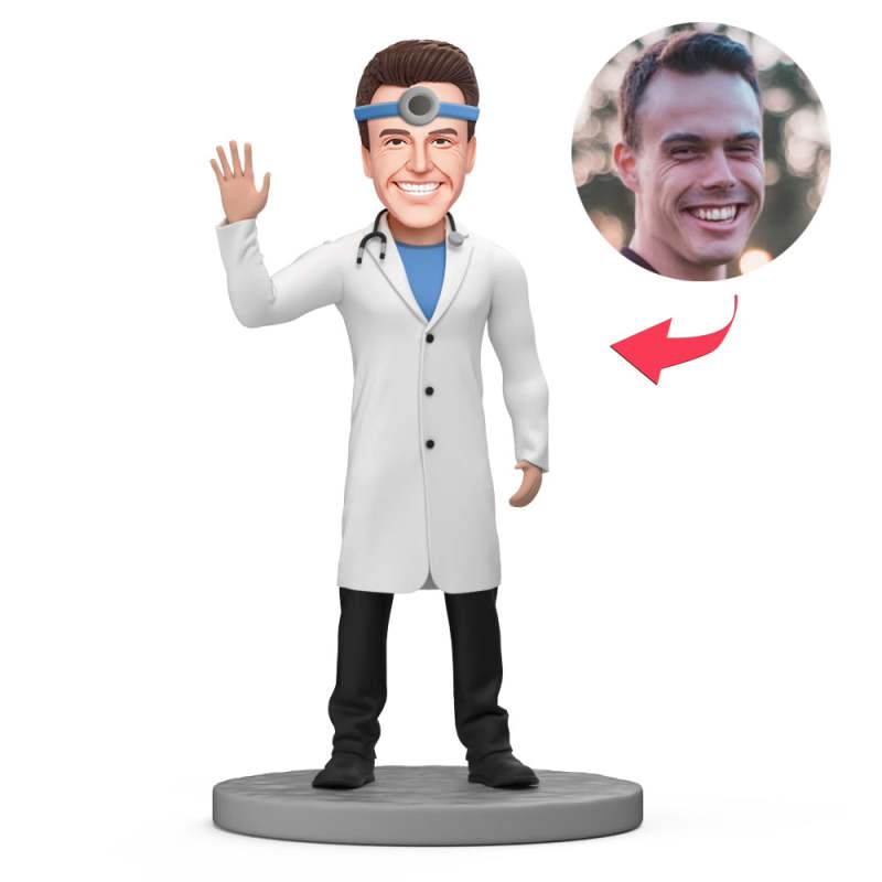 Docteur En Oto-rhino-laryngologie Masculin Avec Lampe Bobblehead Personnalisé Avec Texte Gravé