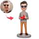 Homme tenant un cadeau en forme de coeur Bobbleheads personnalisés avec texte gravé