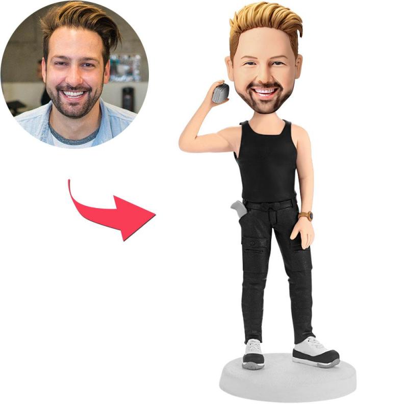 Figurine Personnalisée Homme Tenant un Téléphone