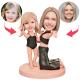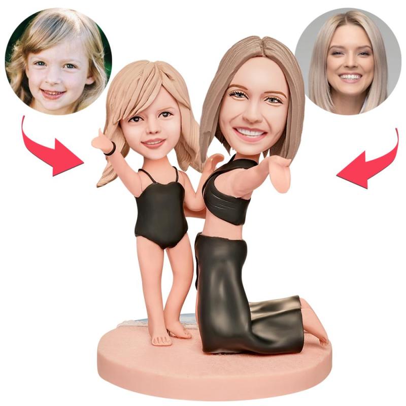 Bobblehead personnalisé Mère et fille en maillot de bain avec texte gravé