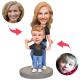 Bobblehead personnalisé Mère et fils en chemises noires avec texte gravé