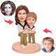 Bobblehead personnalisé Mère et fils font un coeur avec texte gravé