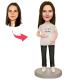Bobblehead personnalisé Schwangere Frau im weißen T-Shirt avec texte gravé