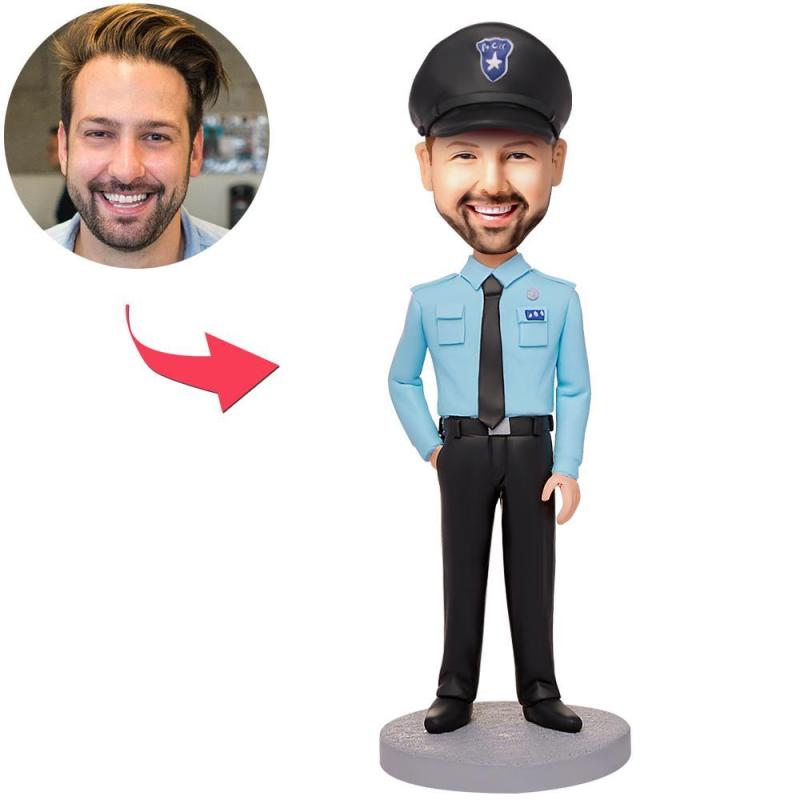 Policier en uniforme de police bleu figurines personnalisées avec texte gravé