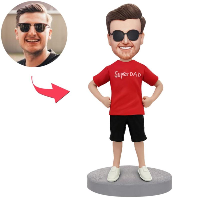 Super papa avec des figurines personnalisées de vêtements décontractés avec texte gravé