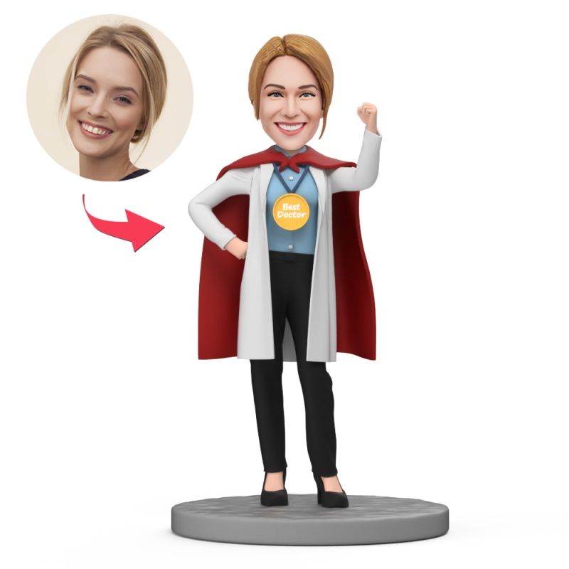 Figurine Bobblehead Personnalisée Superwoman Best Doctor Avec Texte Gravé