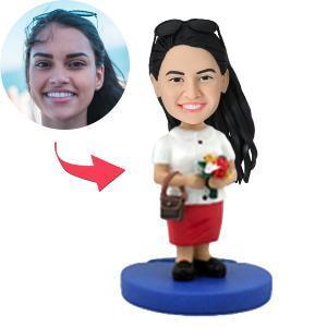 Figurine Personnalisée Femme avec Sac et Fleurs à La Main